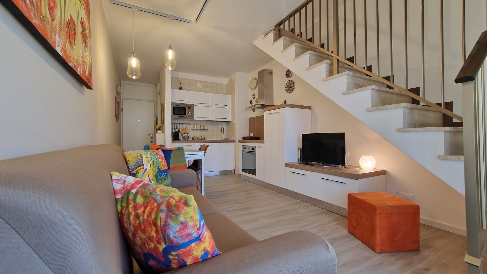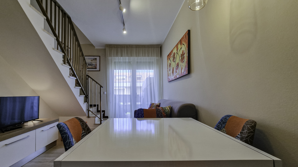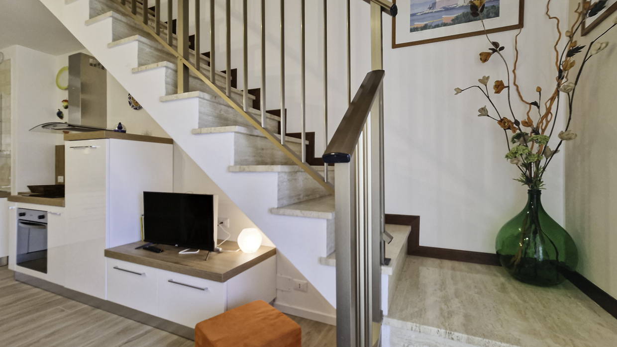 Proponiamo uno spazioso bilocale disposto su due livelli all’ interno di un condominio con accesso diretto alla spiaggia, nella verdeggiante zona di Lido dei Pini, comodo alla Spiaggia di Pluto ed alla passeggiata dei Pini. L’ appartamento è posto al quarto piano servito da ascensore e si compone di un’ ampia e luminosa zona giorno con terrazza abitabile che affaccia lateralmente sul mare, oltre ad un bagno di servizio completo di box doccia. Una scala in muratura conduce al piano superiore, dove trovano spazio una camera matrimoniale con terrazza a pozzo ed un secondo bagno. Completa la proprietà un posto auto coperto al piano seminterrato. L’ appartamento è stato completamente ristrutturato: sono infatti stati sostituiti gli infissi originali con nuovi in pvc ed alluminio con vetrocamera, i pavimenti sono stati rivestiti in gres porcellanato effetto legno ed è stato aggiornato l’ impianto elettrico. Il mobilio è stato sostituito completamente con l’ aggiunta di una piastra ad induzione in cucina.
