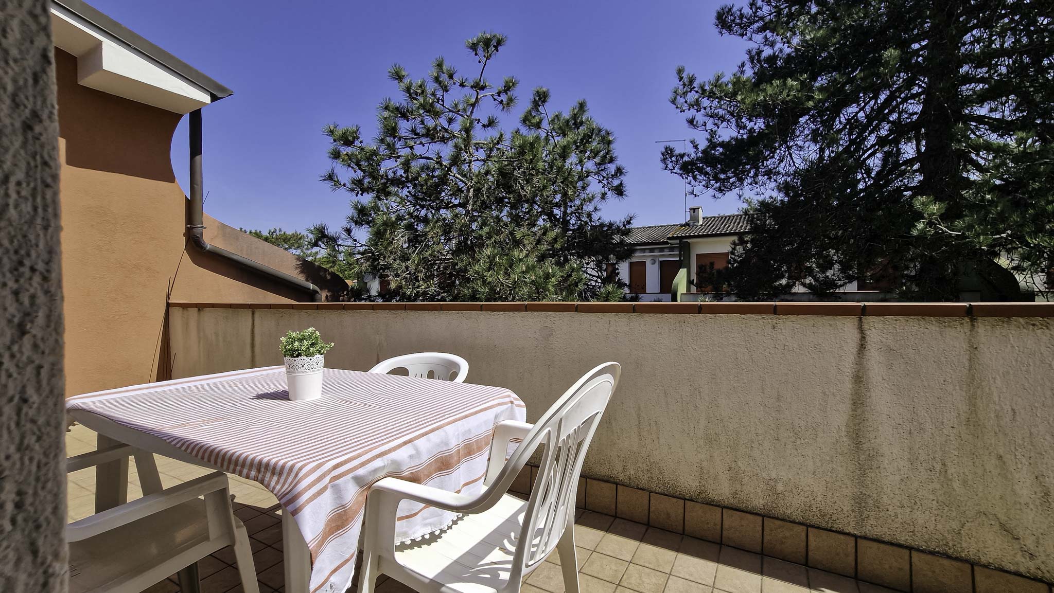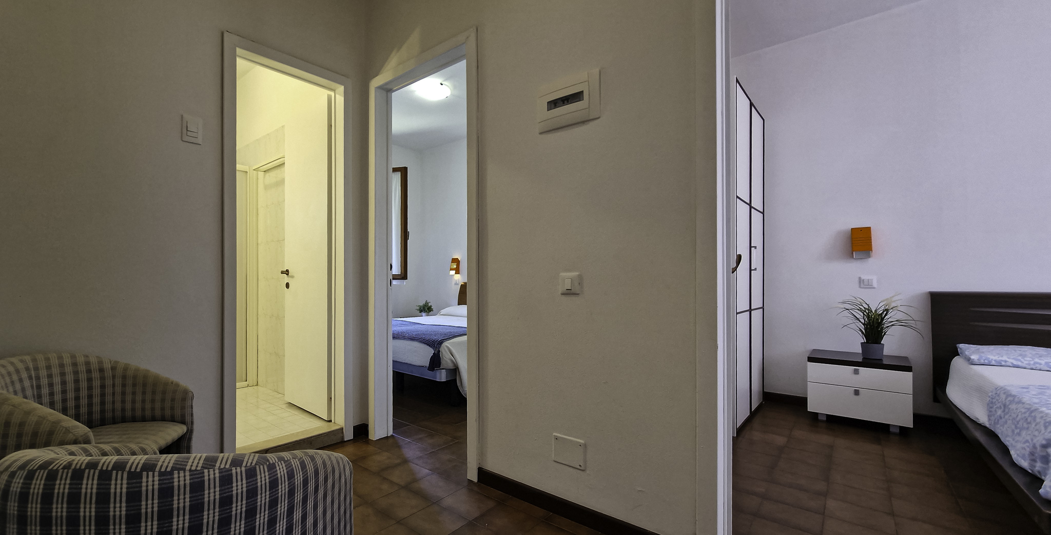 Nel Residence disponiamo di appartamenti trilocali di ampia metratura posti al piano primo con terrazza e dotati di climatizzatore con pompa di calore, tutti nelle vicinanze delle piscine. Internamente gli alloggi sono composti da soggiorno con cucinotto separato, un ampio disimpegno ideale per armadiature, oltre a due camere da letto matrimoniali ed un ampio bagno finestrato. Il terrazzo, rivolto ad est offre un ampio spazio per i per pranzi e cene all’ aperto. Un posto auto coperto completa la proprietà.